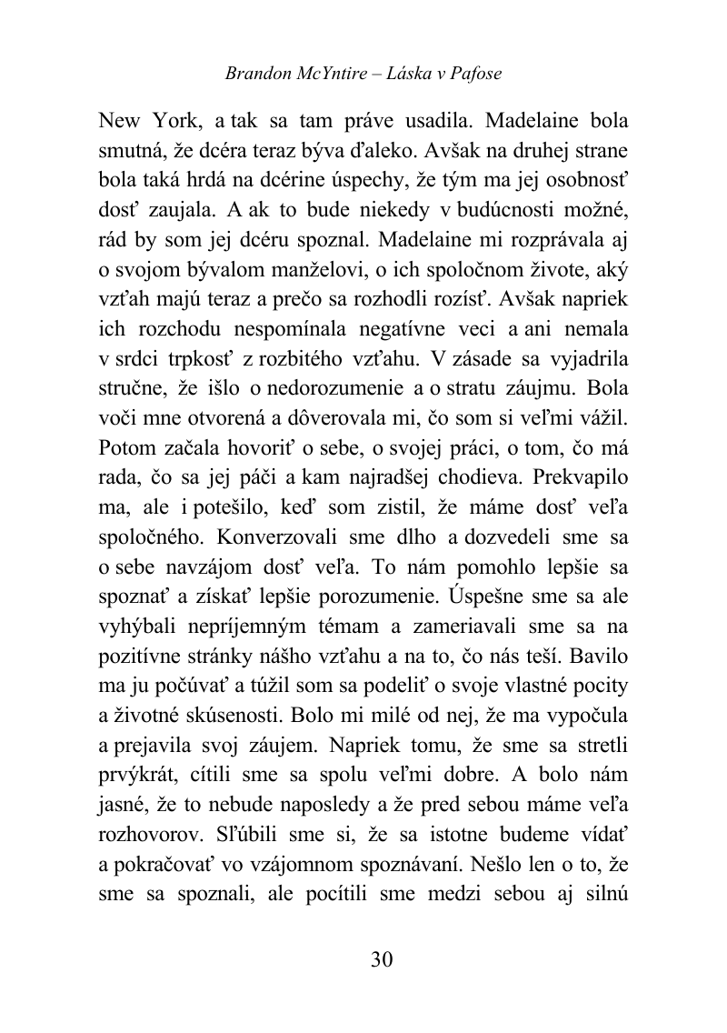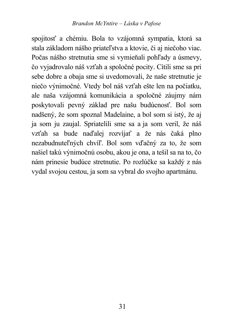 Madelaine dnes naďalej vyučuje na prestížnej univerzite v Londýne. Už sa vidíme častejšie ako v minulosti. Jedno náhodné stretnutie na dovolenke skrížilo naše cesty a osudy navždy. Je možné, aby naozaj existovali také náhody? Alebo je mnoho vecí v našom živote riadených univerzom, ktorému vôbec nerozumieme? Myslím si, že nad tým je zbytočne uvažovať. Človek nemôže nájsť na tieto otázky odpovede. V čase, keď sme sa s priateľkou spoznali, sa čosi udialo, čo môžem vyjadriť jednou vetou, ale ktorej nikto nebude rozumieť. Avšak pochopí ju, až si prečíta môj príbeh. Odpoveď znie: A more povedalo áno.